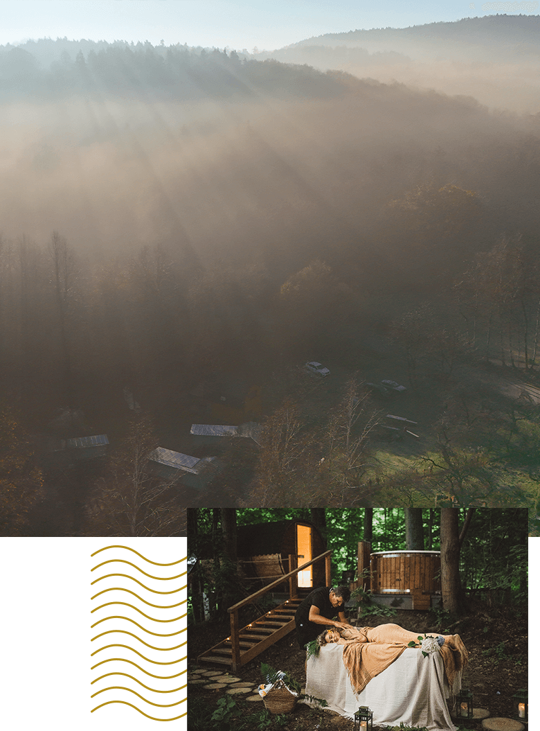 Poprzez zastosowanie naturalnych materiałów, takich jak drewno, a także licznych rozwiązań technologicznych, jak np. ogrzewanie, klimatyzacja i bezpłatne Wi-Fi, zyskaliśmy kompromis między tradycją a nowoczesnością. Dzięki temu możemy mieć pewność, że nasi goście wypoczywają w komfortowych warunkach, a także czują się zrelaksowani i w pełni połączeni z otaczającą przyrodą. Kropką nad “i” jest tu przestronny taras i zagospodarowany teren wokół domków, który zachęca do wspólnego biesiadowania przy ognisku i spędzania czasu na świeżym powietrzu.